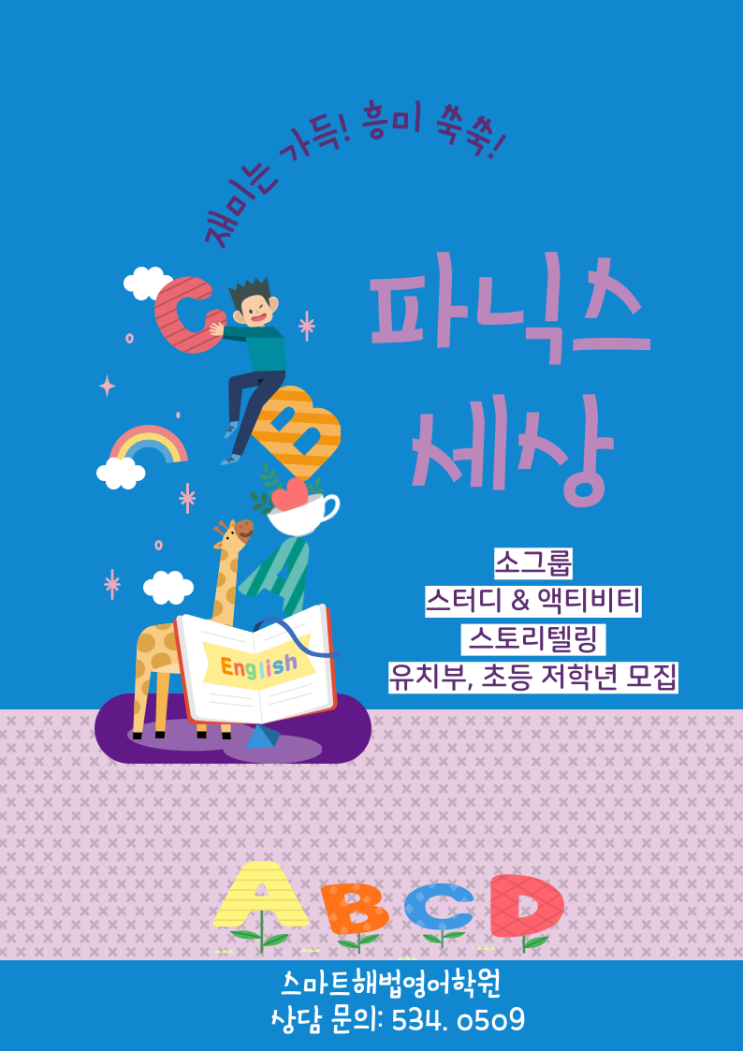 안녕하세요? 스마트해법영어학원 버드내점 Sally입니다. 꽁꽁 얼어버릴것같은 추위에 귀염둥이들이 자꾸만 자꾸만 침대로, 이불속으로 숨어버리는건 아닌지 모르겠네요. 학원에 들어오는 아이들의 코며, 볼이며, 얼굴이, 지나가버린 크리스마스의 루돌프를 생각나게 해서 반갑기도하고 맘이 찡~~~~~하기도하고 그렇습니다. 그래서 학원에 일찌감치와서 뜨끈뜨근♨️ 뎁혀놓고 있어요.♨️♨️♨️ 신규반 오픈해서 기다리신 어머님들께 기쁜소식 전하려고요. 예비초등, 그리고 초등저학년 파닉스반 모집합니다. 얼마전 블로그에 살짝 소개했는데요. 선생님이 직접+ Sally의 스토리텔링+다양한 액티비티로 수업이....... <img src="https://blogthumb.pstatic.net/MjAyNjAxMjJfMTAw/MDAxNzY5MDcwNjQ2OTkw.CHZjK2TxBNJlzsgoKsTgLkwgzbysotdRCYf0nyOKj0gg.YfAR5Ynjp1PboMYbHHKtXz7dbSHZ3TcmzvEv0DKp6wYg.PNG/%C1%A6%B8%F1%C0%BB%A3%AD%C0%D4%B7%C2%C7%D8%C1%D6%BC%BC%BF%E4%A3%DF%A3%AD001%A3%A84%A3%A9.png?type=s3" />