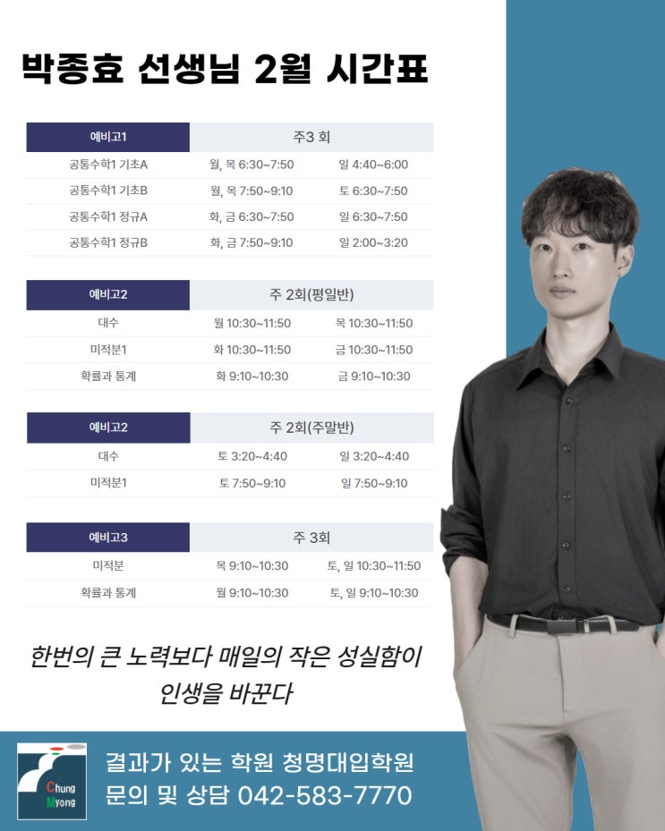 [청명대입학원] 수학 박종효선생님 2월 시간표