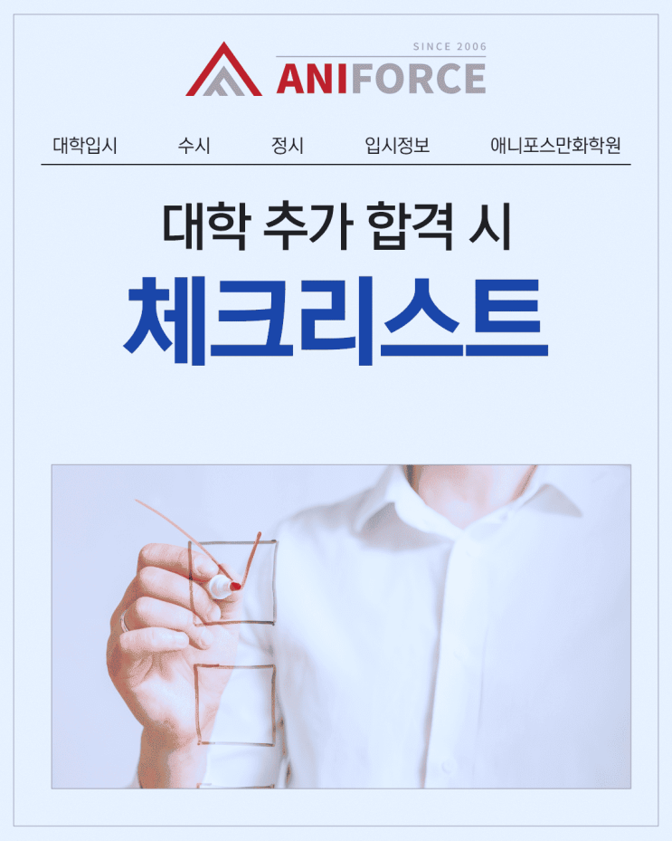 [대전애니포스] 수험생 주목! 대학 추가합격 시 확인해야 할 체크리스트 /대전만화학원,대전웹툰학원,