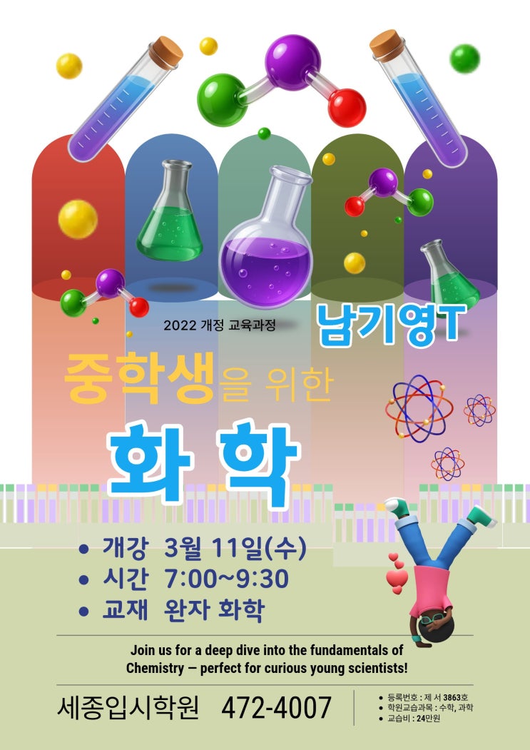 고등학교 입학 후 가장 격차가 벌어지는 과목, 바로 화학입니다. 단순 선행이 아닌 개념의 원리 이해 중심수업으로 화학의 핵심 개념을 중등 수준에 맞춰 쉽고 탄탄하게 정리합니다. <img src="https://blogthumb.pstatic.net/MjAyNjAzMDJfMjEz/MDAxNzcyNDMwNzg5NDcz.i4E3H_LuluejBMvRVlAsTJd9MTMgoczbYpHVXFtieVAg.5pCHuGEohGvTNv3bqaHctLniP0jBNsnC6wYClucYOQAg.JPEG/1772354475451.jpg?type=s3" />