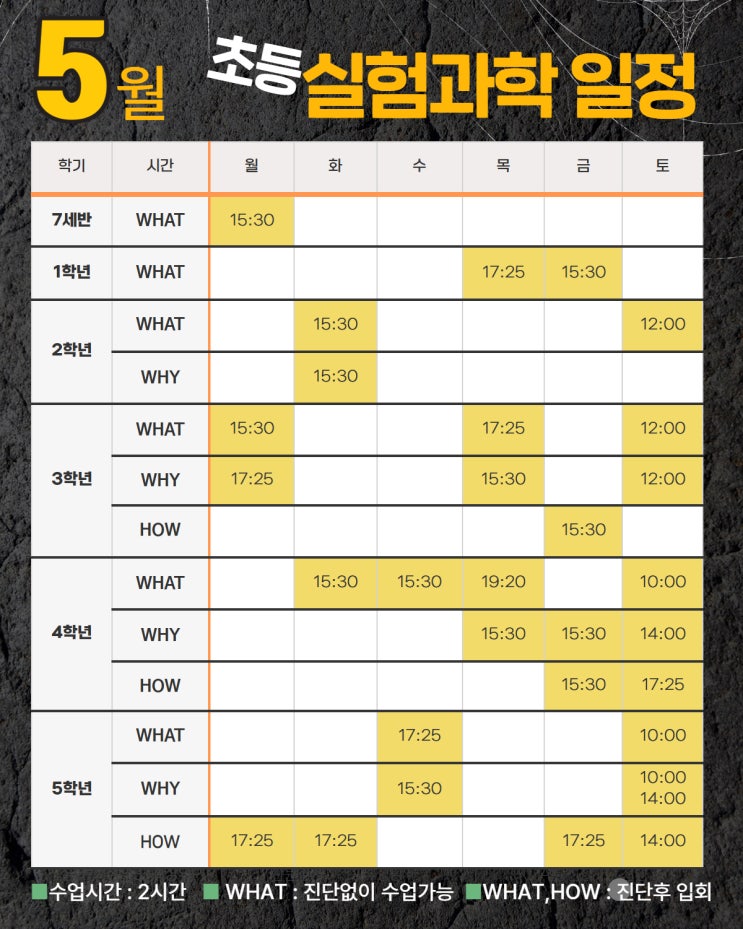 대전도안 과학학원 _ 와이즈만 실험과학 시간표