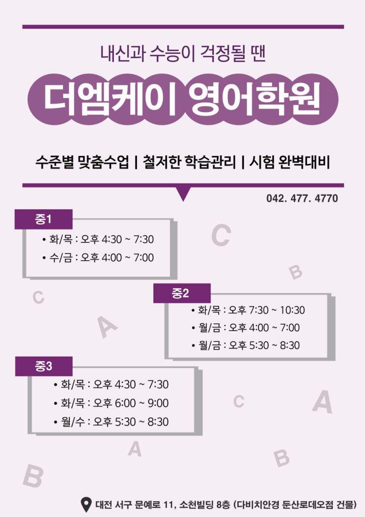 [더엠케이영어] 중등부 시간 안내