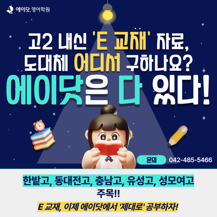 안녕하세요. 에이닷 대전서구점입니다. 3월이 되면서 새 학기가 시작되었습니다. 개학과 동시에 학생들과 학부모님들의 가장 큰 관심사는 바로 내신 대비입니다. 최근 학교 현장에서 특히 많이 언급되는 것이 바로 << 부교재로 사용되는 ‘E 교재’>> 입니다. 점점 늘어나고 있는 ‘E 교재’ 사용 학교 현재까지 알려진 학교만 해도 한밭고, 동대전고, 충남고, 유성고, 성모여고 등이 있습니다. 하지만 실제로는 이 외에도 ‘E 교재’를 사용하는 학교가 더 있을 것으로 예상되고 있습니다. 문제는 이 교재가 내신 대비가 쉽지 않은 교재라는 점입니다. 왜 ‘E 교재’ 대비가 어려울까요? 가장 큰 이유는 자료 부족입니다. ‘E 교재....... <img src="https://blogthumb.pstatic.net/MjAyNjAzMDZfMTUy/MDAxNzcyODAxMjcxODE2.aqmwj3yawerGrL8RaYNQB8eHz_w2ELSbl0-6OXl4ROwg.3JimhBq_TeFoSI0RCElsF7Q3S8DI1Qc3Vq7wfYJHpBUg.PNG/%C1%A6%B8%F1%C0%BB_%C0%D4%B7%C2%C7%D8%C1%D6%BC%BC%BF%E4._%2829%29.png?type=s3" />