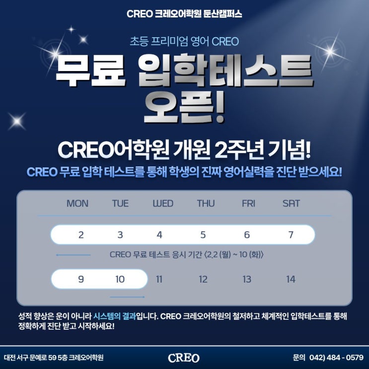 CREO 크레오어학원 둔산캠퍼스 무료 입학테스트 오픈!!