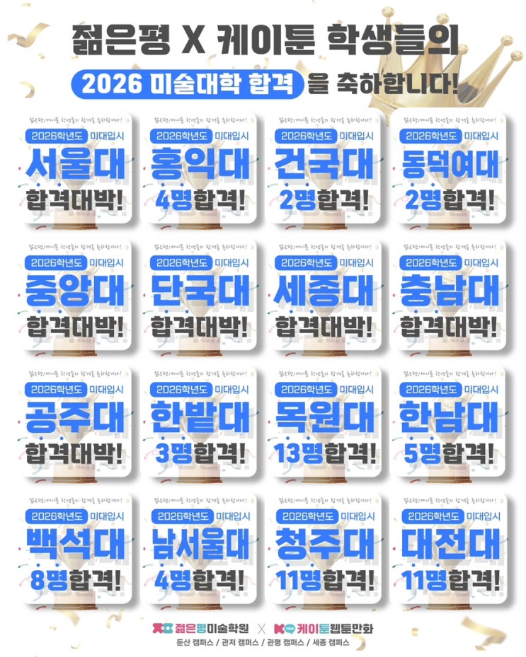 [관저동미술학원]젊은평미술/케이툰만화학원 2026입시결과 합격자 결과