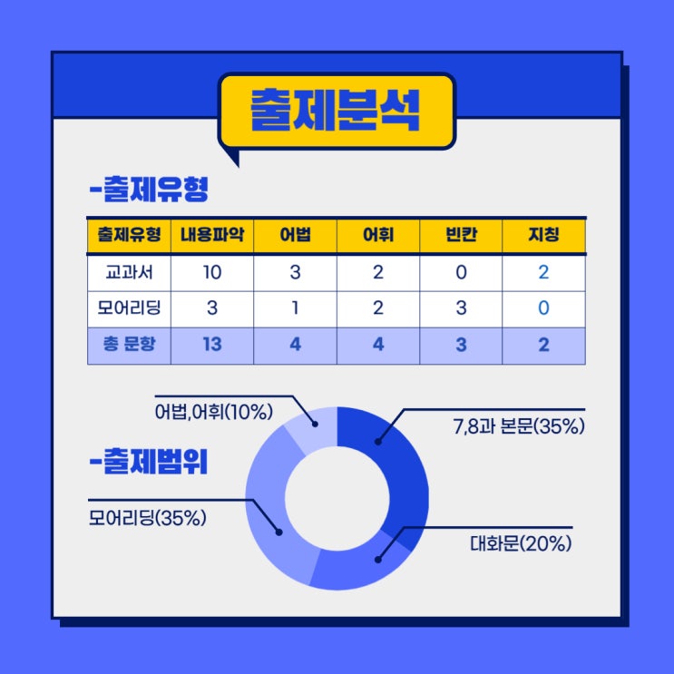 1:1 밀착 관리 + 100% 자체 제작 교재 = 전원 성적 향상! 도안동 영어학원 스터디코어 Spencer 쌤입니다 :) 도안중 1학년 영어는 지난 2학기 중간고사부터 유의미한 변화가 있었습니다. 교과서 외 지문(More Reading)이 과거에 비해 2배가 늘고, 이에 따라 출제 비중도 무려 35%가 이 부분에서 출제가 되었습니다. 과거 2~3개 출제 되던 때와 비교하면 현저한 출제 경향의 변화입니다. 학생들 입장에서는 학습부담이 있겠지만, 인근 고등학교 내신기조와 부합하기 때문에 긍정적인 변화라고 판단됩니다^^ 스터디코어학원의 학습전략 1️⃣정확한 직독직해 훈련 및 구술테스트 ✔️지문을 단순 해석하는 것이 아닌, 대명사가 무엇을 지칭하는....... <img src="https://blogthumb.pstatic.net/MjAyNTEyMTlfMjQ0/MDAxNzY2MTQ3NTkwMDMw.H6XFmLWlM1Hm-q_QDCQMT7ALtvxJRGQ_1H_s0lH_sGsg.5NIxvXL0_KAxKA1ddIj5AsrCG3P1W2DQOCYyjRv8X88g.JPEG/%C1%A6%B8%F1%C0%BB_%C0%D4%B7%C2%C7%D8%C1%D6%BC%BC%BF%E4__%BA%B9%BB%E7%BA%BB-017.jpg?type=s3" />
