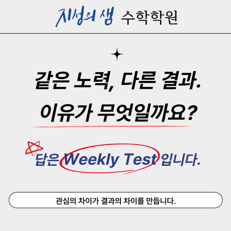 [관저동 지성의샘 수학학원] 같은 노력, 다른 결과. 이유가 무엇일까요? <Weekly Test>