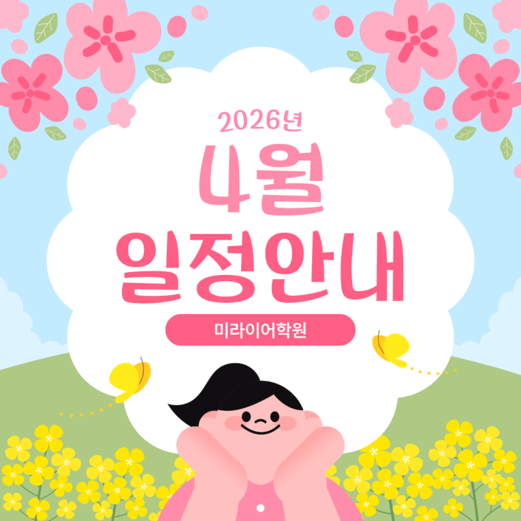 안녕하세요! 미라이어학원입니다 : ) 따뜻한 봄바람과 함께 4월이 시작되었습니다! 길 여기저기에 벌써 봄 꽃이 피기 시작했죠~? 새로운 계절의 설렘처럼, 이번 달도 알차고 의미 있는 시간 보내시길 바라며! 4월 학원 일정 안내드리겠습니다 : D 이번 달 신규 개강하는 반이 많으니 일정표 확인 꼭꼭 해주세요! 그리고 4월부터 7월 시험을 대비하는 JLPT 대비반이 개강됩니다. N1 / N2 / N3 격일반 N1 / N3 매일반으로 운영되오니 참고부탁드립니다 : ) 4월에는 선생님들 해외출장으로 휴강일이 있습니다! 4월 27일 , 28일 휴강이오니 학원 이용에 참고해주세요! 4월에도 힘차게 달려봅시다 :) 수업에서 만나요! <img src="https://blogthumb.pstatic.net/MjAyNjAzMzBfMTU4/MDAxNzc0ODUyMzM2MzE3.FqfuggpWkqra-WRIZMAYsvv9eHs6KKYk2KTfsuuYshwg.F6MH_VwWo2YDJVfVYxwHDzoGo9yuwl2WxBrOo1eqSlUg.PNG/%C1%A6%B8%F1%C0%BB_%C0%D4%B7%C2%C7%D8%C1%D6%BC%BC%BF%E4._%285%29.png?type=s3" />