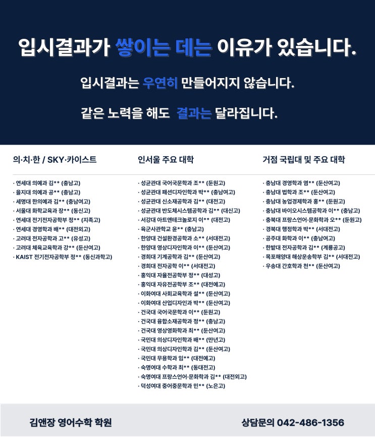 입시결과가 쌓이는 데는 이유가 있습니다.