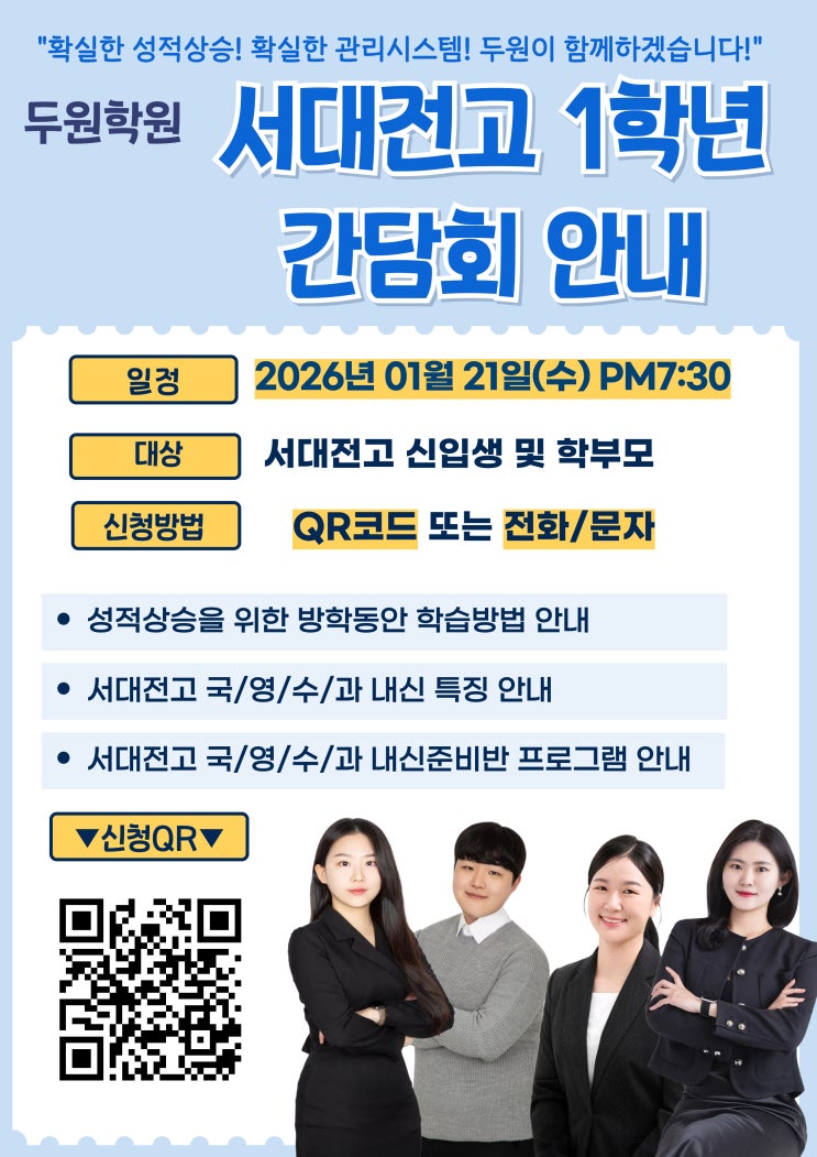 [두원학원]서대전고1학년 간담회 안내(1/21(수) PM7:30)
