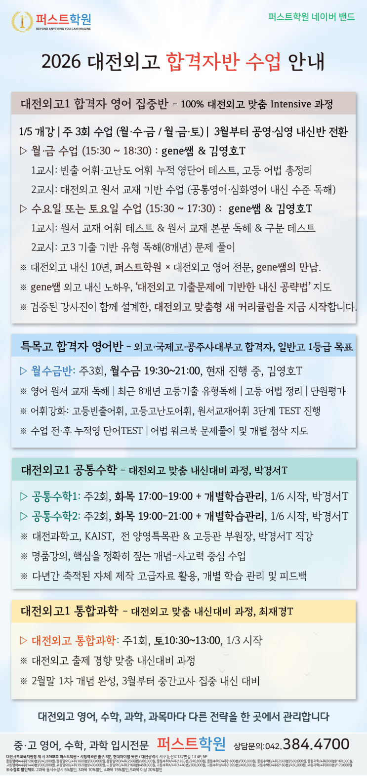 2026 대전외고1 합격자반 수업 안내 - 대전 둔산동 퍼스트학원