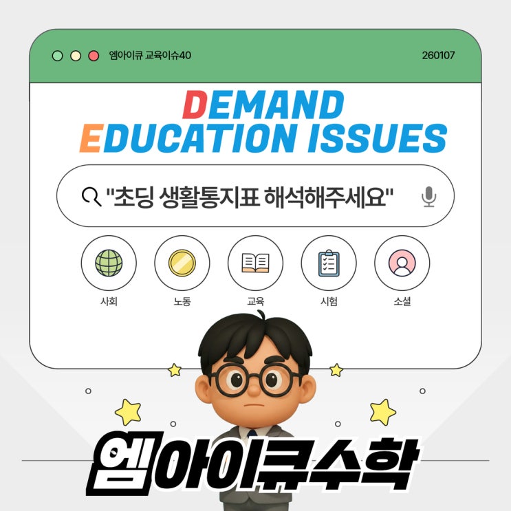 우리 아이 통지표, 칭찬일까요 경고일까요? 맘카페가 뒤집어진 이유 대전 엠아이큐수학 교육 이슈 40 겨울방학이 시작되고 아이들의 손에 학교생활통지표가 들여오는 시즌입니다. 예전 같으면 "수/우/미/양/가"를 보며 성적을 가늠했겠지만, 요즘 통지표는 문장으로 된 서술형 평가가 주를 이루고 있습니다. 그런데 최근 학부모님들 사이에서 이 통지표를 두고 해석이 필요하다는 말이 나오고 있습니다. 단순한 칭찬인 줄 알았는데 알고 보니 무서운 경고였다면? 오늘 기사는 바로 이 암호문 같은 생활통지표의 진실을 다루고 있습니다. 20년 차 교육 전문가의 시선으로 날카롭게 분석해 보겠습니다. 1. 이슈 요약 쳇GPT가 써....... <img src="https://blogthumb.pstatic.net/MjAyNjAxMDdfMjE5/MDAxNzY3NzU3Njg3ODA0.7Pg-N8cq4tSRUv0t4HWoRhJMWqMn1Vr5iTSEHnABfXMg.M7KZsW9eQq_vUi3g_m6ZrRhu0zaTX0efpp-RD6mu7vYg.JPEG/miq%BC%F6%C7%D0_%BF%A5%BE%C6%C0%CC%C5%A5_%BC%F6%BF%E4_%B1%B3%C0%B0_%C0%CC%BD%B4_%B4%EB%C0%FC_%B5%D0%BB%EA%B5%BF_%BC%F6%C7%D0%C7%D0%BF%F8_%BF%A5%BE%C6%C0%CC%C5%A5%BC%F6%C7%D0%C7%D0%BF%F8_%C3%CA%B5%F9_%BB%FD%C8%B0%C5%EB%C1%F6%C7%A5_%C7%D8%BC%AE%C7%D8%C1%D6%BC%BC%BF%E4.jpg?type=s3" />