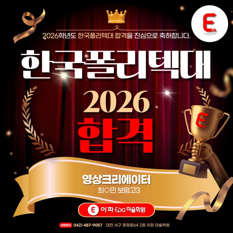 [이파미술학원]2026학년도 한국폴리텍대합격을 축하합니다! /대전입시미술학원