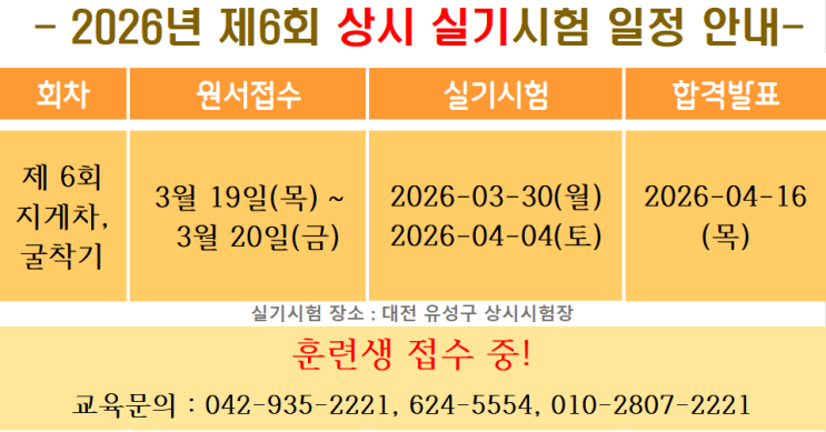 [상시시험] 2026년 제6회 상시 실기시험 일정안내- 지게차 굴착기 기능사
