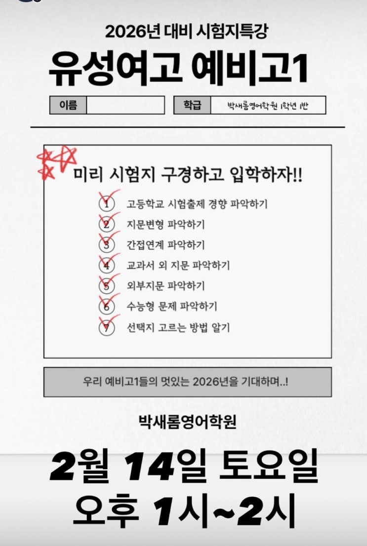 유성여고 예비고1 시험지특강
