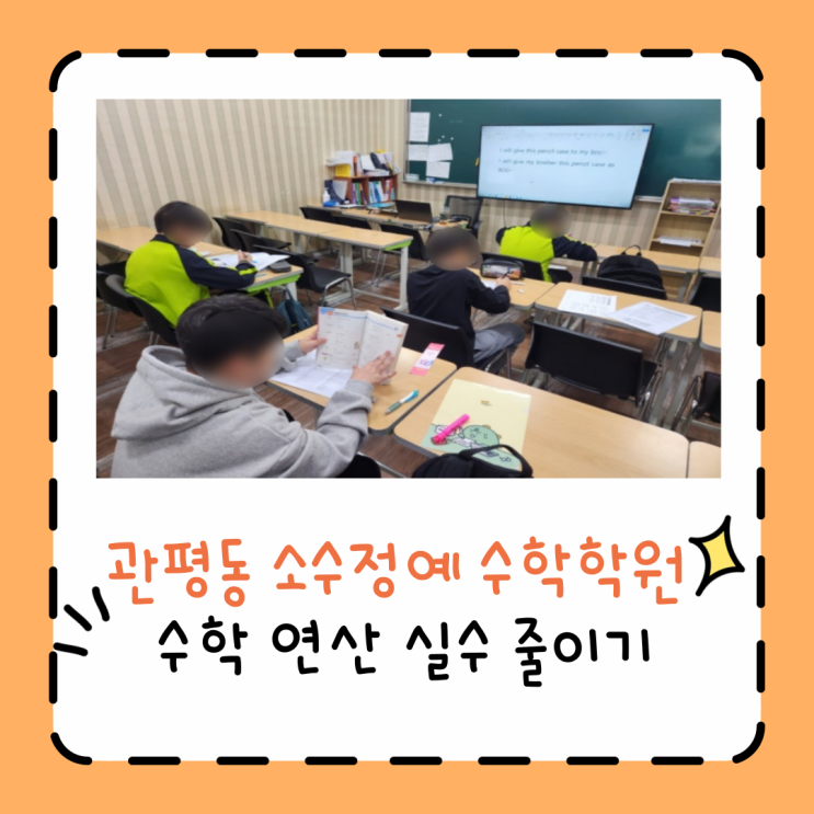 개념은 다 아는데 계산에서 틀려요. 시험만 보면 실수가 늘어나요. 연산 실수만 줄이면 성적이 오를 것 같은데 방법을 모르겠어요. 관평동에서 소수정예 수학학원을 운영하며 상담을 진행하다 보면 많이 듣는 고민입니다. 수학 성적이 오르지 않는 이유는 생각보다 단순합니다. 모르는 문제 때문이 아니라 반복되는 연산 실수 때문인 경우가 많습니다. 특히 초등 고학년과 중학생 시기에는 풀이 습관과 계산 과정이 완성되지 않아 실수가 성적을 좌우하게 됩니다. 실수는 단순한 집중력 문제가 아니라 훈련과 관리로 충분히 줄일 수 있는 영역입니다. 오늘은 수업 현장에서 실제 효과가 있었던 연산 실수 줄이는 핵심 방법 3가지를 알려드리겠습....... <img src="https://blogthumb.pstatic.net/MjAyNjAyMDhfMTQg/MDAxNzcwNTUwODY0ODE4.C3Df6vHrkioBWd7oSIsZiNz4A8uWNr4yR3L-U3dne_og.Etwo7P_R61igJ8wuisZvuF407AoqeinKi5r3SoDUZgcg.PNG/%BF%A1%BD%BA%BF%A5SM_%BA%B9%BB%E7%BA%BB-009.png?type=s3" />
