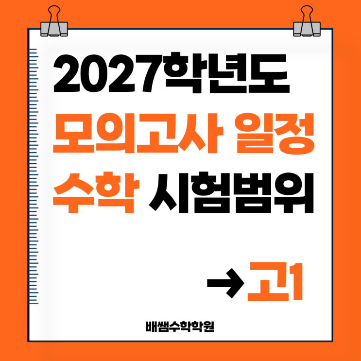 [배쌤수학학원] 2027학년도 고1 모의고사 일정 및 수학 시험범위
