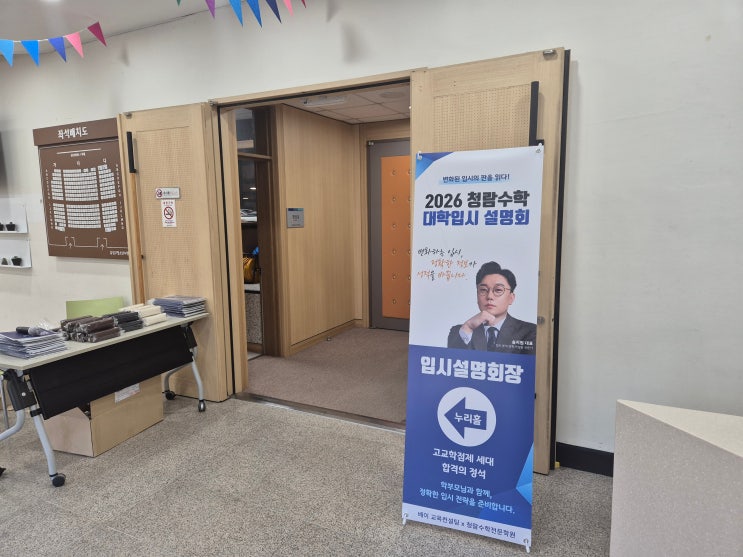 안녕하세요. 청람수학학원입니다~! 지난 3월7일(토)에 대전 유성구 청소년수련관 누리홀에서 2026학년도 대학입시 설명회를 상황리에 진행했습니다. 이번 설명회는 반석청람수학학원 & 노은청람수학학원 재학생 학부모님들과 학생들만을 대상으로 하였으며 높은 관심과 참석 속에서 진행되었습니다. 설명회가 시작되기 전부터 자료를 살펴보며 입시 이야기를 나누는 모습이 인상적이었습니다. 베이교육 컨설팅 송지원 대표 초청 입시 강연 이번 설명회는 베이교육 컨설팅 송지원 대표를 초청하여 최근 입시에서 가장 큰 변화라고 할 수 있는 고교학점제와 그에 따라 변화된 입시 전략에 대해 자세히 알아보는 시간을 가졌습니다. 이번 강연은....... <img src="https://blogthumb.pstatic.net/MjAyNjAzMTJfMjEy/MDAxNzczMzE3MDI5NTMy._mvJL_mrNXFl4kqDyCxFD53SURdxruUPOU_zDq-eyksg.nG9mZczF4QDVVg0RmdSxSIL9kIe2j7xQATSeKVst3mkg.JPEG/20260307_112148.jpg?type=s3" />