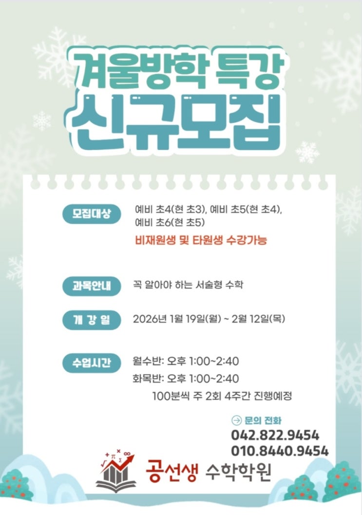 ⚝ 앤드영어 겨울 특강 수강생 모집 ⚝ 황금같은 겨울방학기간 ,놀지말고 알차게 공부하고 싶은 학생들 모여주세요 ! ✴︎수강 신청은 선착순 마감되며, 특강 결석시 보강 및 이월이 제공되지 않으니 참고 부탁드립니다. 감사합니다ᰔ . . . 특강문의) 010.7574.8034 <img src="https://blogthumb.pstatic.net/MjAyNTEyMTJfMTE5/MDAxNzY1NTM5Nzg0OTE1.unJ-uPJKabwrxOn6ZMZfGAJQvU4ktbUeJ4YtUGCDLwkg.t5UWRbYgaFTzAor1mupjd1bafhbSaCZW5Zoq7WVlDxYg.JPEG/%C1%A6%B8%F1%C0%BB_%C0%D4%B7%C2%C7%D8%C1%D6%BC%BC%BF%E4_%284%29.jpg?type=s3" />