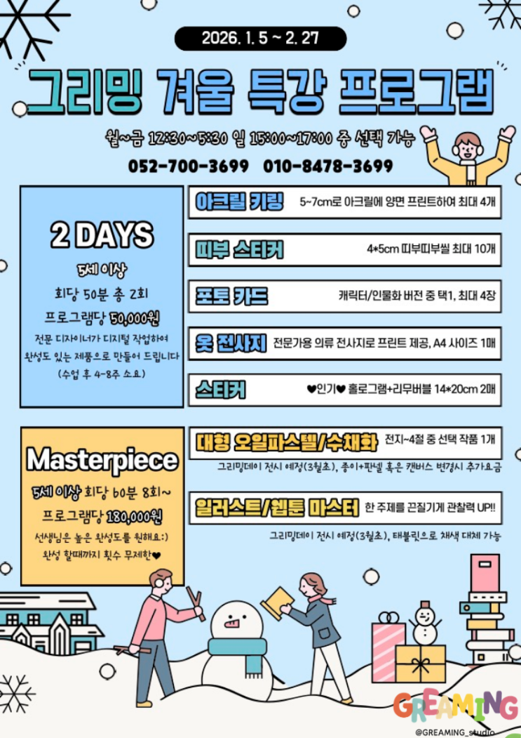 2026 겨울방학 특강 안내 울산 그리밍미술학원 원데이클래스(2DAY)