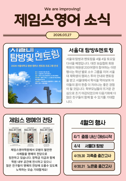 4월 제임스영어 소식