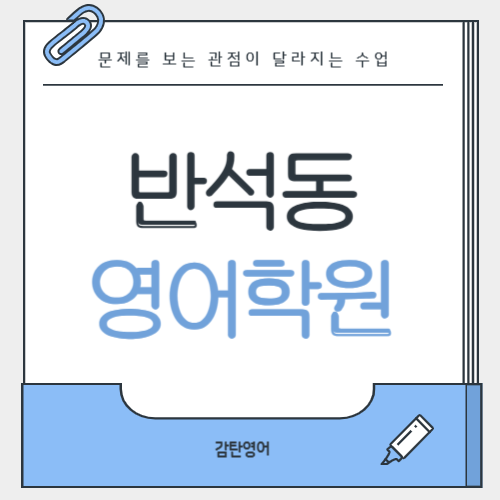 영어학원을 알아보시는 분들께 한 가지 꼭 말씀드리고 싶은 부분이 있습니다. 영어는 단순히 문제를 많이 푼다고 해서 실력이 쌓이는 과목은 아닙니다. 같은 문제를 풀더라도 어떤 관점으로 접근하느냐에 따라 이해의 깊이가 달라지기 때문입니다. 저희 감탄영어학원은 이 ‘문제를 보는 관점’을 중요하게 생각하며 수업을 운영하고 있습니다. --- 반석동영어학원 중1부터 달라지는 흐름 점점 격차가 벌어지는 이유 처음에는 큰 차이가 없어 보일 수 있습니다. 하지만 중1 시기부터 학생들 사이에 조금씩 차이가 나타나기 시작합니다. 문제를 풀고 정답만 확인하는 학생과 왜 이 답을 골랐는지, 왜 다른 선택지는 아닌지까지 설명할 수 있는 학....... <img src="https://blogthumb.pstatic.net/MjAyNjAzMzFfMTEw/MDAxNzc0OTM0MjkyNzIz.NVnsGL0Et1she03zZ5AGlUsFjs3vDfsttTDFV8BIoEIg.D0eNbbqV-HlbyprnVqStKNRg7uBDB1Pe79jJ50pLQtkg.PNG/001.png?type=s3" />