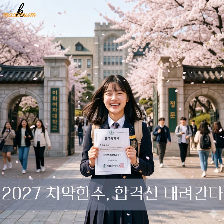 안녕하세요. 대전 목동에서 충남여중 충남여고를 주력으로 고등 수업과 입시컨설팅을 하는 K선생님 인사드려요! 의대 증원 소식에 온 나라가 들썩이고 있죠? 그런데 K선생이 오늘 얘기하려는 건 의대가 아닙니다. 의대 증원의 진짜 수혜자는 치대·약대·한의대를 노리는 학생이라는 거예요. 최상위권이 의대로 몰리면서, 나머지 의약학 계열의 합격선이 연쇄적으로 흔들리고 있거든요. 이 틈새를 제대로 파악하면, 여러분의 합격 가능성이 달라집니다! 1. 의대 증원이 치·약·한에 미치는 구조적 영향 먼저 큰 그림부터 보자. 2027학년도 의대 정원이 490명 증원되고, 지역의사제로 전원 선발돼. 거기에 N수생까지 의대에 대거 도전하면서, 최상위....... <img src="https://blogthumb.pstatic.net/MjAyNjAzMTJfMTQ3/MDAxNzczMzAyOTcwNDgz.unXbFOoU1i6Xsa1Ubldy7ItM15zpLU7QdCJZud-6z9og.CC5qtK353OOMuWqtdDm4UC5kCIIK116NkU4iYK07O_Ag.JPEG/%C1%A6%B8%F1%C0%BB-%C0%D4%B7%C2%C7%D8%C1%D6%BC%BC%BF%E4_-031.jpg?type=s3" />