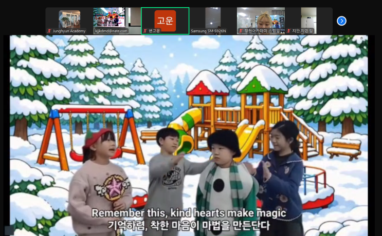 2026년 2월 13일, 11th JH Musical 화면 너머로 전해진 뜨거운 감동 정현방송국 (JBS) 오픈! 제11회 영어 뮤지컬 'Little Speakers ' 공개합니다! "무대는 바뀌어도, 아이들의 진심은 변하지 않습니다." 2010년 첫 영어 연극 발표회를 시작으로, 정현아카데미는 지난 16년간 멈추지 않고 아이들의 영어 성장을 위한 발표 형식을 변화와 즐거움을 추구해 왔습니다. 정현의 역사는 곧 우리 아이들이 영어를 '학습'이 아닌 '삶'으로 즐기게 하려는 고민의 기록이기도 합니다. 올해, 정현은 또 한 번의 혁신을 시도했습니다. 올해 겨울 해외 영어 캠프를 진행하며 시간적인 제약을 해결하면서 뮤....... <img src="https://blogthumb.pstatic.net/MjAyNjAyMjFfMTAx/MDAxNzcxNjA5Nzg1NDc5.N4_2dnsjWn-ogF1YYp1_0p7Sk974ozHRSYLVzSTCgvgg.2bsLTdOhgKTK_XOPXsKgoidiaQinS6Pa2PyK7a6_9Aog.PNG/m.png?type=s3" />