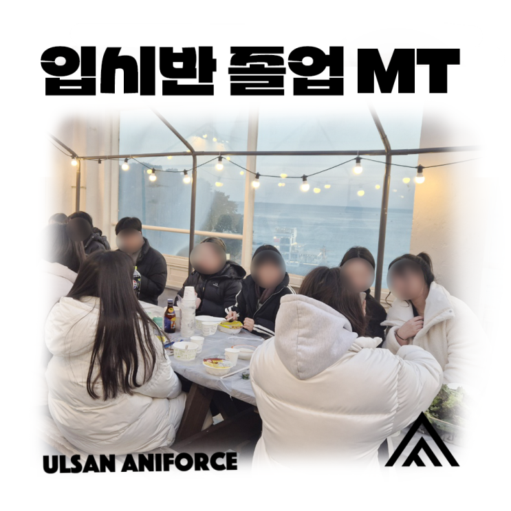 안녕하세요! DREAMS COME TRUE! 꿈이 이루어지는 공간. 울산 애니포스 만화학원입니다! (캐치프라이즈 외치는 시간! 빠샤!) ✊ 지난 2월 8일, 입시반 친구들과 함께 졸업 기념 MT를 다녀왔답니다! 모두 함께 MT의 현장으로 가볼까요? 울산 애니포스의 첫 엠티! 장소는 부산 송정이었답니다 숙소 창밖으로 바로 송정 바닷가를 한눈에 바라볼 수 있는 곳이었어요! 숙소에 들어오자마자 신나게 창밖을 구경하는 친구들의 모습이 아직도 눈에 선하군요 후후... 간단히 짐을 풀고 워밍업을 위한 게임 시간! 선생님을 대표로 팀을 짠 후, 마리오 파티를 모두 열심히 즐겨주었어요 다들 처음에는 룰을 잘 몰라 헤매더니, 턴이 지나....... <img src="https://blogthumb.pstatic.net/MjAyNjAyMjZfMjc3/MDAxNzcyMDc3OTE2MDk2.UxOxhXAFP7x6iAIXND2jeR3fJh4-NgR7TMaH2bL2dacg.xkVggwudR186C8yWlsbHMe5MLpvfeQg-EmynG8A6cTog.PNG/%C0%D4%BD%C3%B9%DD_%C1%B9%BE%F7_MT.png?type=s3" />