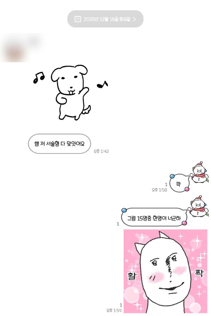 이번 확통 기말고사에서 100점 받았습니다 네, 그냥… 자랑하고 싶어서 씁니다. 확률과 통계가 쉬운 과목은 아니잖아요. 계산 한 줄만 어긋나도 감점이고, 서술형은 풀이 흐름이 조금만 흔들려도 점수가 깎입니다. 그래서 시험이 끝난 뒤에도 괜히 마음이 편하지 않았습니다. “혹시 부호 하나 틀린 건 아닐까…” “괜히 쓸데없는 실수한 건 아닐까…” 머릿속으로 답안을 몇 번이나 다시 써봤습니다. 그리고 결과 확인. 100점. 숫자 보는 순간, 그동안 했던 반복이 한 번에 떠올랐습니다. 개념 다시 정리하고, 유형별로 계속 풀어보고, 틀린 문제는 그냥 넘어가지 않고 끝까지 붙잡았던 시간들. 역시 기본이 제일 중요하다는 걸 다시 한 번....... <img src="https://blogthumb.pstatic.net/MjAyNjAyMjZfMTE4/MDAxNzcyMDc4OTQ0NTcz.I0pZdoomIEog8BQ1CCR0uQ-ciJ8seJGwyLzhiKptS3wg.6rXr0KFHYT5qfKXDXDt6Z8pz6SsLb0RyEQTg50-W-7og.JPEG/KakaoTalk_20251216_135911758.jpg?type=s3" />