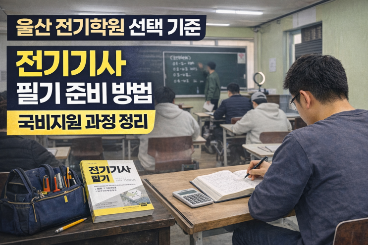 전기 관련 직무를 준비하거나 설비 · 생산직 취업을 준비하는 분들이라면 한 번쯤 전기기사 자격증을 고민하게 됩니다. 전기기사는 전기 분야에서 대표적인 국가기술자격증으로, 취업 시 우대 요서가 되거나 설비관리 · 전기안전 관련 직무에서 활용도가 높은 자격증입니다. 특히 울산처럼 산업단지가 많은 지역에서는 전기 설비, 생산 설비, 공장 유지보수 직무에서 전기 관련 자격증의 중요성이 더욱 높습니다. 그래서 오늘은 울산전기학원 선택 기준과 전기기사 필기 준비 방법, 국비지원 과정까지 한 번에 정리해 보겠습니다. 전기기사 자격증 왜 준비해야 할까 전기기사는 전기 분야에서 산업기사보다 한 단계 높은 국가기술자격증으로 전기....... <img src="https://blogthumb.pstatic.net/MjAyNjAzMTFfNDYg/MDAxNzczMjEwNzEyMzUy.ulVq9H2S9TDSd3o0HeAwpqRwzJjsjRoUpuvdnejV7tkg.EFYXKIPy7AlNBesPnw0PWj15dowihy275Lmo_yI0NTUg.PNG/%BF%EF%BB%EA%C0%FC%B1%E2%C7%D0%BF%F8_%C0%FC%B1%E2%B1%E2%BB%E7_%C3%EB%B5%E6.png?type=s3" />