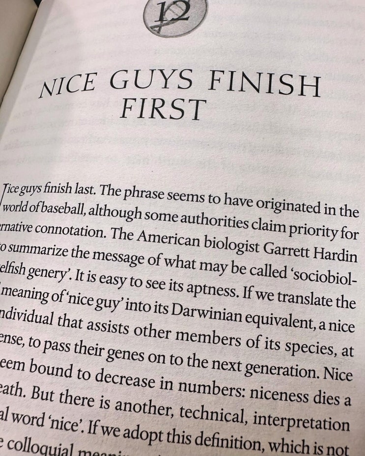 Nice guys finish last. 이 표현, 은근히 많이 쓰이는데 뉘앙스가 중요 “Nice guys finish last”는 “착하기만 한 사람은 결국 손해 본다” “너무 순하고 양보만 하면 경쟁에서 뒤처진다” 조금 풀어서 말하면 세상은 경쟁적인데 자기 주장 안 하고 거절도 못 하고 항상 남 먼저 챙기기만 하면 결국 성과·보상·관계에서 밀릴 수 있다는 의미야. 실제 사용 예 회사, 연애, 인간관계, 경쟁 상황에서 자주 나와. “He’s too nice. You know what they say—nice guys finish last.” (걔는 너무 착해. 알잖아, 착하기만 하면 손해 본다는 말.) 또한 요즘 Start with Why. 준쌤은 왜 이 일을 하고 있나 준쌤을 어떻게 시작하게 되었으....... <img src="https://blogthumb.pstatic.net/MjAyNjAyMDhfMjY3/MDAxNzcwNDc2NzM0OTY2.-TEO5urhWnCpsqLwxX2GBkK9r3t2cdVP51Z0hXK6TW0g.egjl6ZUP_evCHIk2lHJTNso1Jwoft-w5vnitozjK614g.JPEG/KakaoTalk_20260207_233554146_26.jpg?type=s3" />
