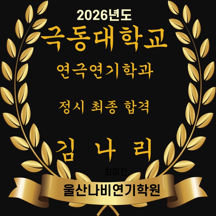 울산연기학원] 울산나비연기학원 2026 극동대학교 정시 최종합격을 축하합니다