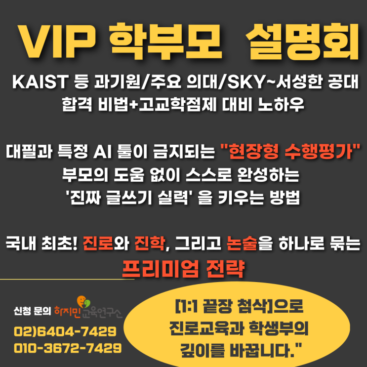 [학부모 설명회] KAIST 등 과기원·인서울 주요 의대 등 합격 사례 공유 + 고교학점제 완벽 대비 전략 ■ 설명회 핵심 포인트 -Case Study: 8년간 축적된 최상위권 (의대/과기원/SKY) 합격생들의 교과·비교과 사례연구 바탕 통합전략, 학부모 Q&A -Solution: 독자적 시스템 [인크리딩 & 인크탐구] + 프리미엄 진로진학 컨설팅 -Growth: 실제 재원생의 '진로독서 → 탐구형 에세이 → 탐구형 보고서(세특)' 성장 포트폴리오 공개 수업 시간 현장형 글쓰기 수행평가, 우리 아이는 외부 도움 없이 스스로 해낼 수 있습니까?" 대필이나 AI 툴로는 따라올 수 없는 '진짜 실력' 준비되어 있나요? 특목자사고 합격과 컨....... <img src="https://blogthumb.pstatic.net/MjAyNjAxMjhfNiAg/MDAxNzY5NjA3MzkxNzQ0.a2EIPyMRmsbMXBnFd-26GkvDpxKp_CIt82nEfS03eTog.0gVVIto-Ppxygy2LzLeaqbAwZ1y8xjbXkDMTs91gQ0Eg.PNG/%C0%CE%C5%A9%B8%AE%B5%F9_%C1%F8%B7%CE%B5%B6%BC%AD_%B4%EB%C4%A1%B5%B6%BC%AD%B3%ED%BC%FA_%C7%CF%C1%F6%B9%CE%B1%B3%C0%B0%BF%AC%B1%B8%BC%D2_%C5%BD%B1%B8%BA%B8%B0%ED%BC%AD.png?type=s3" />