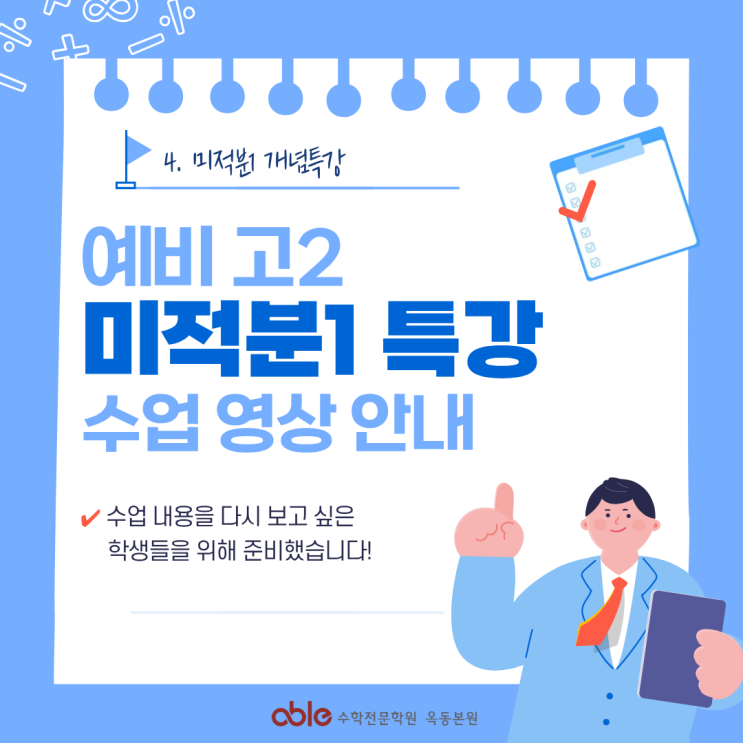 [울산 옥동 수학학원 에이블] 4. 미적분 개념특강 수업 영상 안내