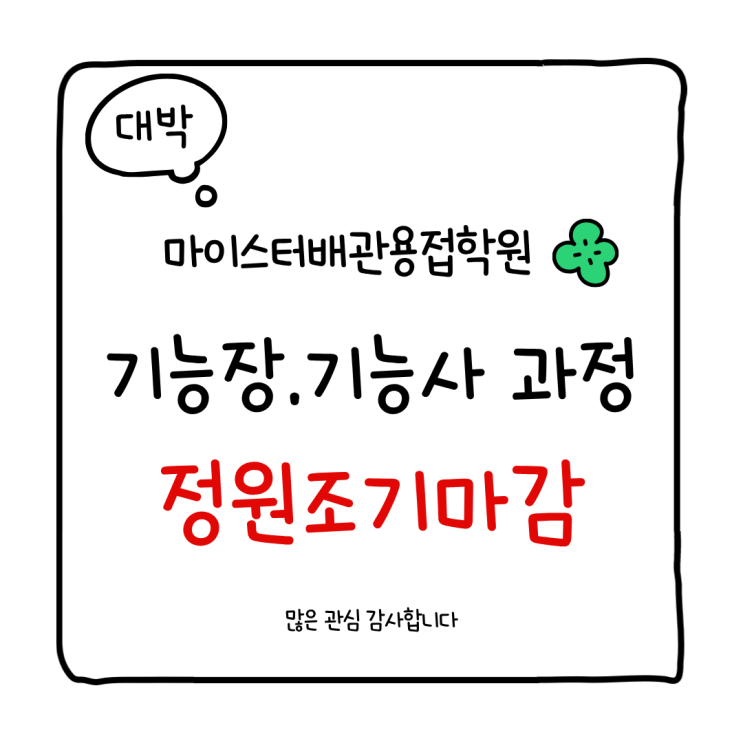 많은 관심 감사합니다|기능사·기능장 과정 모집 마감 안내