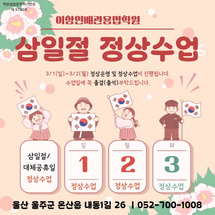 울산용접학원 2026년 기능장/기능사 장소변경 및 빈자리접수안내 - 온수온돌기능사개강안내, 3월1일 삼일절, 대체공휴일 정상운영합니다.