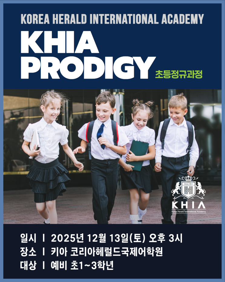 유치부 정규과정 졸업생 & 리터니(Returnee)를 위한 프리미엄 초등 영어 프로그램 안녕하세요, 학부형님! KHIA 초등부 Prodigy 정규 과정은 단순한 영어 수업을 넘어, “누가 더 많이 알고 있는가”가 아니라 “누가 더 깊이 생각하고, 표현할 수 있는가”를 중심에 둔 KHIA의 핵심 프로그램입니다. KHIA 유치부 정규 영어 과정 또는 이에 준하는 과정을 졸업한 친구들, 그리고 해외에서 공부하고 돌아온 리터니(Returnee) 학생들이 자신의 수준과 학습 배경에 맞는 교육을 받을 수 있도록 설계된 프리미엄 커리큘럼이라는 점에서 특별한 의미를 가집니다. ️일정: 12월 13일(토) 오후 3시 모집학년: 예비초 1~3학년 (2026년도 기준....... <img src="https://blogthumb.pstatic.net/MjAyNTExMTNfMzIg/MDAxNzYzMDA5NjMyMzQ0.Rpeq7OGTPHYb4hwrWR5u9rIFvQqjHasm9lKCWHzJFQQg.PCk0zA3-gJZvwbYhb4CDRjPRKR0sIV-w72T7fBg3nAUg.PNG/%C3%CA%B5%EE_%C0%D4%C7%D0%BC%B3%B8%ED%C8%B8.png?type=s3" />