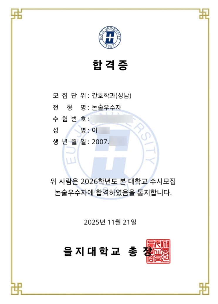 [2026학년도] 을지대 간호학과(성남) 약술형 논술로 합격!