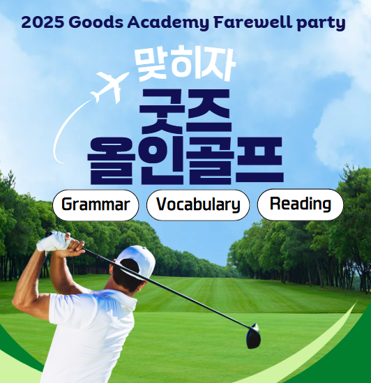 안녕하세요, 굿즈어학원 입니다 26일 행사 프로그램에 추가 게임 안내드립니다! 이번 행사에서는 팀별로 이루어지는 스피드 단어 게임과 함께, 교내에서 두 번째로 진행되는 영어 스피치 대회(영어 말하기 대회)도 준비되어 있습니다. 아이들이 자신감을 키우고 영어 표현력을 보여줄 수 있는 좋은 기회이니 많은 참여 부탁드립니다! 이번 행사에는 새롭게 2가지 영어 게임이 추가되었습니다! ⛳ 골프 영어 퀴즈 게임 – 모든 홀을 클리어하며 끝까지 라운딩하는 영어 게임 볼링 영어 퀴즈 게임 – 스트라이크 치고 영어 퀴즈를 맞히는 팀 대항 게임 두 게임 모두 팀별로 진행되는 영어 퀴즈 활동으로, 아이들이 즐겁게 참여하며 자....... <img src="https://blogthumb.pstatic.net/MjAyNTEyMDZfMTQ0/MDAxNzY0OTkxOTUyMTU3.cJ_ZhyuWi2rqMOClt5zkYPp1bhRHkiq6x5emPVMTPacg.6Ir89XBTpN63CeWyhqca62HXzj8CGjD_c_Yk9wcVUdsg.PNG/KakaoTalk_20251206_123014581.png?type=s3" />