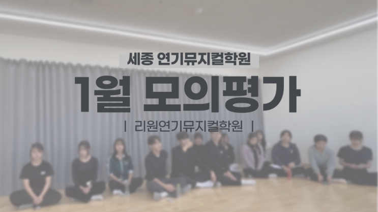 안녕하세요. 입시 경력 15년 이상 한국예술종합학교 강사진이 직접 강의하는 세종시 연기학원 리원연기뮤지컬학원입니다. 리원연기뮤지컬학원은 21년 개원이래 지금까지 대학 입시반 합격률 100%를 달성했으며, 매년 압도적인 입시 결과로 증명된 세종시 최고의 입시연기학원입니다. 27학년도 입시반의 첫 모의평가인 1월 실기 모의평가가 마무리 되었습니다. 이번 모의평가는 당일대사- 뮤지컬보컬 - 움직임(무용) - 면접 순으로 진행되었으며 심사는 연기, 보컬, 무용 각 파트 강사님들께서 맡아주셨습니다. 앞으로 더욱 발전할 학생들의 모습을 기대하며 함께 달립니다. 세종시 연기, 뮤지컬입시 체계적으로, 제대로 배울 수 있는 리원연기뮤....... <img src="https://blogthumb.pstatic.net/MjAyNjAyMTJfODgg/MDAxNzcwODg2NjkwNjM5.Zi9LPOotuZtiUUlpwfoS-DKFiWPTzqlJ7TPyhw_lG6cg.i4sWoweZd6vo3EYV5rzITYlfB9IqqA87JetRdZ_f9EQg.PNG/%C1%A6%B8%F1%C0%BB-%C0%D4%B7%C2%C7%D8%C1%D6%BC%BC%BF%E4_-001.png?type=s3" />