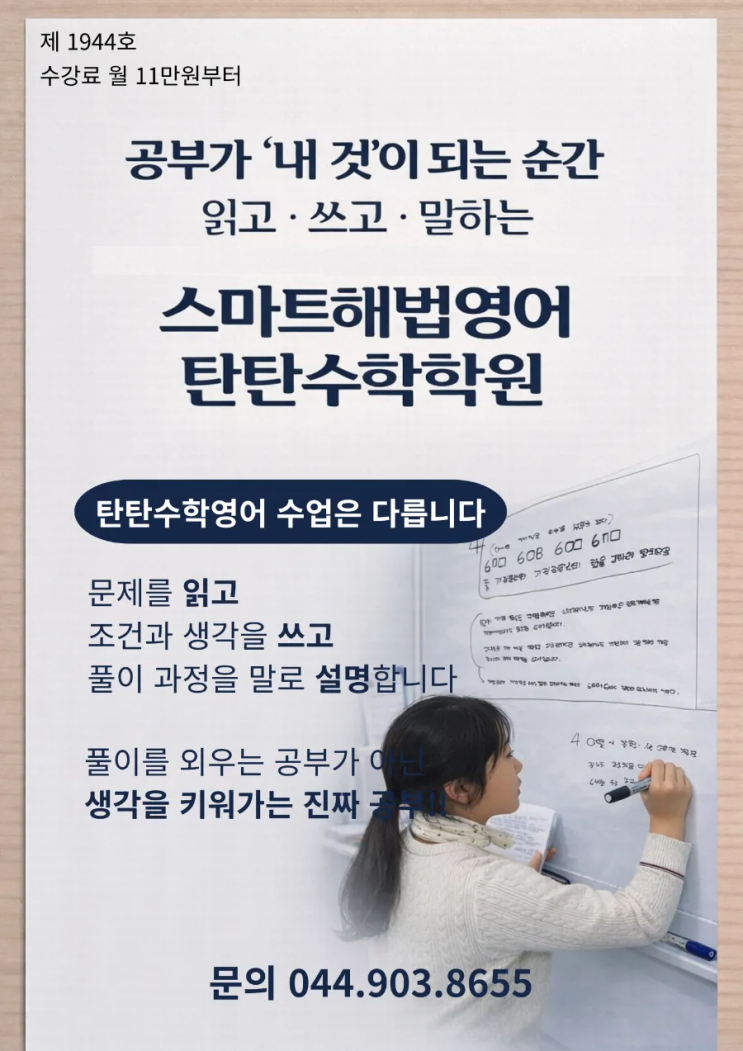 세종 다정동 가온수학학원에서는 이번 주에 전 학년을 대상으로 서술형 시험을 진행했습니다. 수학 성적을 숫자로만 보는 것이 아니라, 아이들이 문제를 어떻게 읽고 이해하는지, 그리고 그 과정을 얼마나 정확하게 표현할 수 있는지를 확인해 보기 위한 시험이었습니다. 다정동 수학 학원들을 알아보시는 부모님들께서 가장 많이 하시는 고민이 있습니다. “서술형만 나오면 우리 아이가 잘 풀지 못해요.” 객관식은 반복 연습으로 어느 정도 올라가지만, 서술형은 문제 이해력, 개념 정리, 글쓰기 습관까지 함께 필요하기 때문에 집에서 혼자 연습하기가 쉽지 않습니다. 그래서 다정동 가온수학학원은 서술형을 따로 떼어 ‘연습–시험–피드백....... <img src="https://blogthumb.pstatic.net/MjAyNjAyMTVfNTcg/MDAxNzcxMTYzMDE4ODU2.hKqucXXoRTrlzs6sjgCr5QYX6xK96AYrksKvDfolT3Ug.0nC_C_vkAUQ37UzYrrcCxiQXjbNnZg4jPInVPwlpPjYg.JPEG/900%A3%DF20260212%A3%DF142800.jpg?type=s3" />