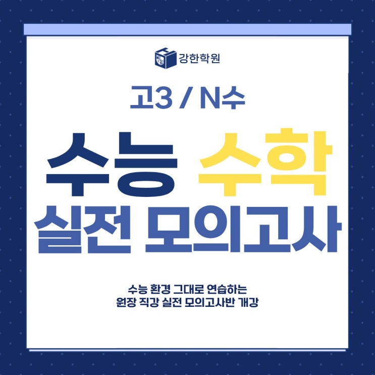 고3 / N수생을 위한 수능 수학 실전 모의고사반 개강! 안녕하세요. 강한학원입니다. 수능이 가까워질수록 많은 학생들이 이렇게 말합니다. "문제는 풀 수 있는데 시험만 보면 점수가 떨어져요." 이 이유는 대부분 실전 경험 부족 때문입니다. 그래서 강한학원에서는 단순 문제풀이가 아닌 수능 환경 그대로 연습하는 실전 모의고사반을 운영합니다. 2026년 3월 6일 금요일 개강한 실전 모의고사반, 어떻게 수업이 진행될까요? 1️⃣ 실제 수능과 동일한 시험 환경 실전 모의고사반은 단순히 문제를 풀고 끝나는 수업이 아닙니다. ✔ 시험 시작 시간 엄수 ✔ 실제 수능과 동일한 시험 진행 ✔ 긴장감 있는 시험 분위기 조성 수능은 실력....... <img src="https://blogthumb.pstatic.net/MjAyNjAzMDhfMjUx/MDAxNzcyOTU4ODU2NzYw.ndyJObgcmPGAotccQBwh70nUorPzb0Lzop5w3V9TV0og.DjlksfoouyuaCDrgIo3nxjPHfuHjSo7bjxFiMUc7qAog.JPEG/%BA%ED%B7%CE%B1%D7_%BD%E6%B3%D7%C0%CF.jpg?type=s3" />