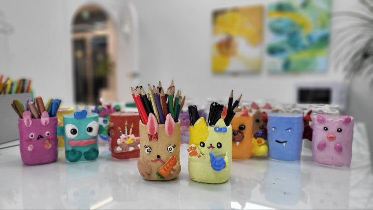 이번주 유치부ㆍ초등부 친구들이 생활의 필수품인 연필꽂이를 지점토로 만드는 수업중입니다♡ 너무 귀엽죠? 지점토로 틀을 잡고 붙이고 원하는 모양대로 꾸며줘요♡ 이제 다 마르고나면 원하는대로 채색도 예쁘게 해줍니다♡ 마르고나면 반짝반짝 윤기나게도 해주구요^^ 각자의 개성을 살린 작품들이라 어찌나 귀엽던지요 아이들의 상상력이 살아숨시는 시간♡ 작품에서 끝나지않고 우리 친구들 생활에서 꼭 필요한 생필품입니다♡ 신학기를 위해 준비해볼까요?^^ 궁금한 사항이 있으시면 언제든 문의주세요♡ 방문상담은 예약필수!입니다^^ 교육문의 010-4279-3990 1.학원명:조은미술학원 2.교습과목: 미술 3.등록번호:제634호 4.교육비:15....... <img src="https://blogthumb.pstatic.net/MjAyNjAyMTFfMjA2/MDAxNzcwNzQyNTcyMDUz.QzJ5D2D4R_imlvR_MDF49mQfgOSe6pxsaab43VPoWLkg.RLD129Z0A4GqFXrglYC_WBBfRPCQbpMDahjgMdqRtKAg.JPEG/900%A3%DF1770719659355.jpg?type=s3" />