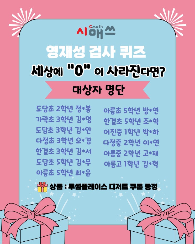 [시매쓰 세종청사] 2월 영재성 검사 퀴즈 이벤트 당첨자 발표