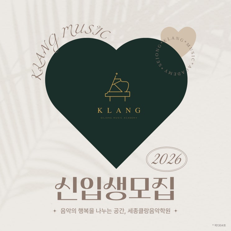 2026년, 우리 아이에게 성취감을 선물하세요 AI와 디지털이 매우 발달한 요즘, 스마트폰을 다루는 시간보다 정서적 안정감과 감수성을 심어주는 건반 연주를 통해 아이들에게 몰입하는 즐거움을 선물해 주세요. 음악의 행복을 나누는 공간, 다정동 피아노학원 세종클랑음악학원에서 2026년 함께 꿈을 키워가며 밝게 성장할 아이들을 모집합니다. 피아노를 시작해야 하는 이유? 피아노는 아이의 뇌 발달과 성격적인 부분에서 큰 도움을 줍니다. 오른손과 왼손 양손을 사용하며 좌뇌와 우뇌를 골고루 발달시키는 데 도움을 주며, 계이름과 박자 악보를 읽는 과정을 통해 아이의 집중력과 논리력에 큰 도움을 줍니다. 음악을 접하며 긍정적이고 밝은....... <img src="https://blogthumb.pstatic.net/MjAyNjAyMTlfMTM1/MDAxNzcxNDMxNjIyODIy.EsN0bTpQJ8hJZsnsjHVmu62JjPd-dr7T3K8vtXp2ZA8g.MY8xQSMXcG6YJwwds56zbg72fUIM0kSNvlAfuzj0qkwg.JPEG/2026%B3%E2_%BD%C5%C0%D4%BB%FD%B8%F0%C1%FD.jpg?type=s3" />
