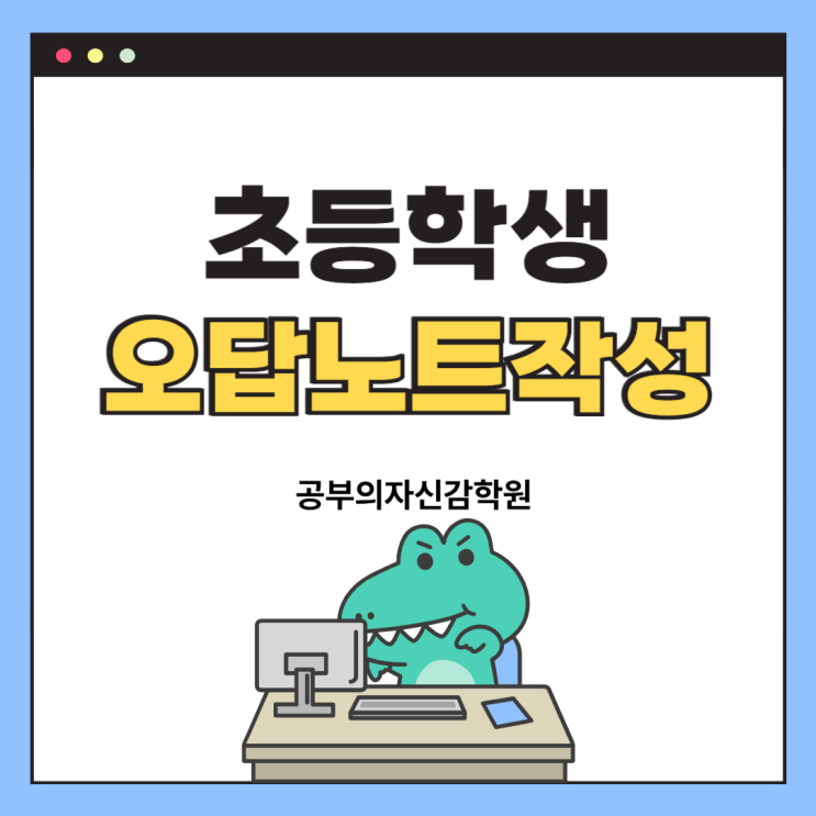 안녕하세요 스스로 공부하는 자기주도적학습 공부의자신감학원 입니다. 중고등학생이 되어서 상위권을 유지하는 아이들의 공통점은 무엇일까요? 바로 자신의 약점을 스스로 파악하는 메타인지 능력이 뛰어나다는 점입니다. 그리고 이 능력을 초등 시기에 가장 자연스럽게 기를 수 있는 도구가 바로 오답노트입니다. 하지만 무작정 틀린 문제를 옮겨 적기만 하는 오답노트는 아이에게 벌처럼 느껴질 뿐 학습 효과가 떨어지는데요 어떻게 하면 아이가 스스로 틀린 이유를 분석하고, 다음에는 맞출 수 있는 힘을 기를 수 있을까요? 오늘은 초등학생 자녀를 둔 부모님들이 반드시 알아야 할 실패 없는 오답노트 작성법과 실전 활용 팁을 정리해 보았....... <img src="https://blogthumb.pstatic.net/MjAyNjAzMDlfMjA4/MDAxNzczMDI0MzY0OTIz.Ls1LgdoeTqkiZyoW2tAPJ7wBwd3nHG-NxblcGhpgLaYg.FOZJrmyC4lW5RLmS38ALUpo1EZlqg_e-w6WjziRSDb0g.PNG/%C1%A6%B8%F1%C0%BB_%C0%D4%B7%C2%C7%D8%C1%D6%BC%BC%BF%E4_-001_-_2026-03-09T114548.237.png?type=s3" />