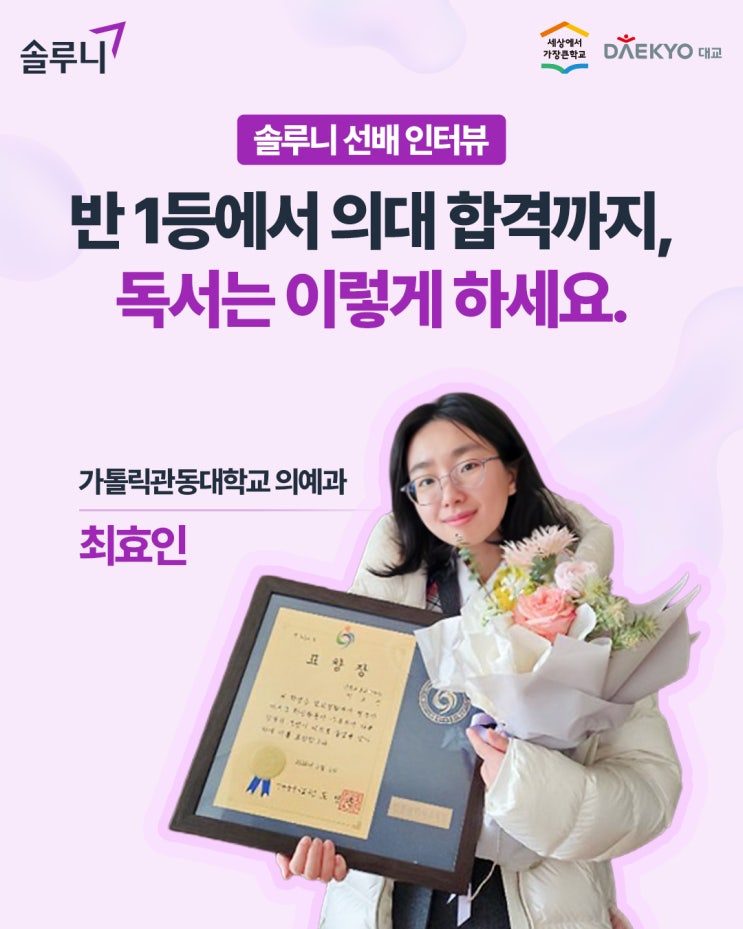 [솔루니 선배 인터뷰] 반 1등에서 의대 합격까지, 독서는 이렇게 하세요