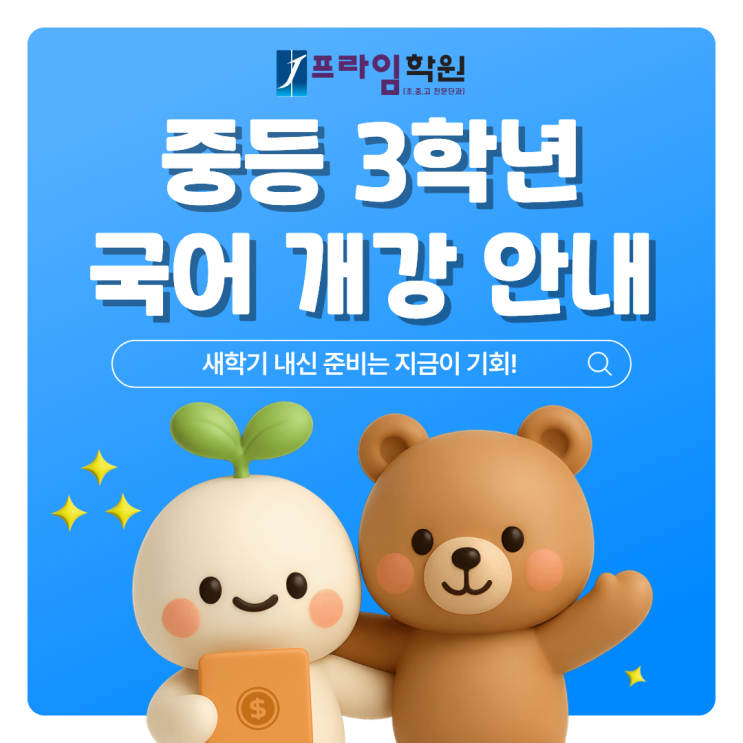 중등 3학년 국어 개강 확정 !!! : 고등 국어 성적이 달라집니다. [J프라임학원, 천천동학원, 중등국어]