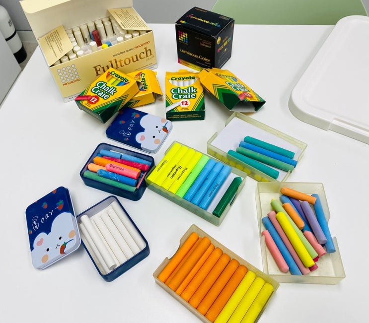 칠판지우개 패드를 구입하러 온라인 쇼핑몰에 들렀습니다. 분필, 왜 이렇게 욕심이 나는지요. 분필이 이렇게나 많은데 말이지요. 종이박스에 들어있던 것들을 꺼내서 옮겨 담았습니다. 크레욜라 분필, 하고로모 분필, 그리고 예전에 가죽 칠판지우개 브랜드 클리니에서 판매하던 분필도 몇 개 가지고 있습니다. 붉은색 계열을 많이 사용하고, 노랑과 푸른색 계열이 많이 남았습니다. 하나씩 써 보았습니다. 제일 좋아하는 크레욜라 갈색은 한 개 남았네요. 번갈아 써보니 하고로모는 입자가 굵고, 크레욜라는 작은 게 느껴집니다. 얇은 심의 볼펜을 좋아하는 저는, 크레욜라가 좀 더 예쁘게 써지는 것 같아요. 그래도 아이들 눈에 잘 띄는 하고로....... <img src="https://blogthumb.pstatic.net/MjAyNjAyMDRfMTEw/MDAxNzcwMjE2NDkwODQz.wb15cR39A98x_sZ05IdcVd7HlxEondr-fqaF_DB8KaMg.L9aDM9UxfTKYwERCilxjFOkN1haOOK2Y0VKY9IRuGMUg.JPEG/output%A3%DF3183165769.jpg?type=s3" />
